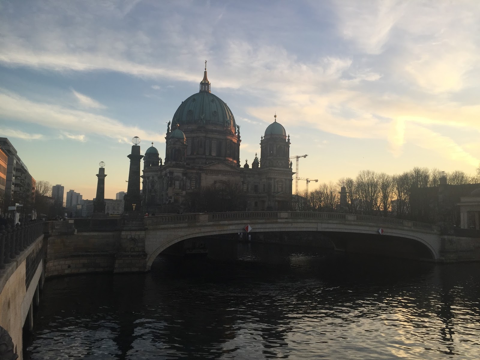 Se alza majestuosa en las proximidades del Río Spree, coronada por una cúpula de cobre de color verdoso. Es el edificio religioso más representativo de Berlín, situado enfrente del jardín Lustgarten, entre la Isla de los Museos y el solar antes ocupado por el Palacio Imperial. Muy chula.